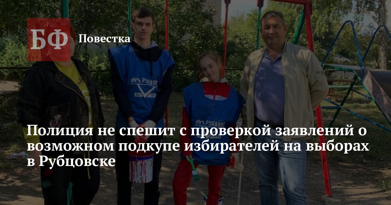 По словам Чернобая, в рубцовском избиркоме данные заявления рассматривать не стали, сославшись на компетенцию полиции. Прокуратура в связи с тем, что речь идет о возможном правонарушении, также перенаправила обращения в МВД. Стражи порядка назначили проверку, но неоднократно продляли сроки ее проведения, добавил собеседник. В последний раз правоохранители сообщили об отсрочке 5 октября, но мотивированного объяснения этому не представили, сказал он.