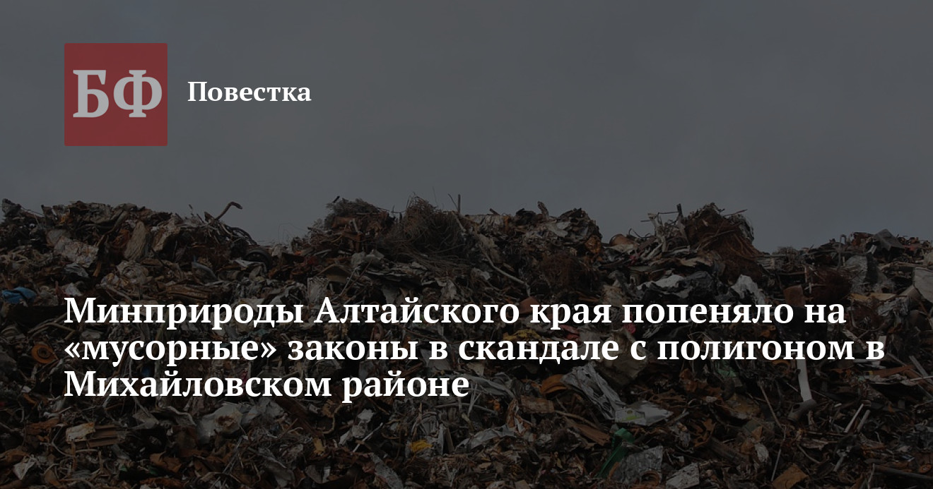 При этом в Минприроды уточнили, что размещать мусор на площадке завода химреактивов предложила администрация соседнего Волчихинского района в ходе общественных обсуждений при разработке схемы. Такую идею муниципалитет выдвинул, чтобы сократить плечо транспортирования ТКО в Михайловском районе. Мусор из Волчихинского района складируют возле райцентра Волчиха на полигоне, которые принадлежит регоператору «ВторГеоРесурс». Остальные отходы зоны размещают на полигоне ООО «Благоустройство» под Рубцовском.
