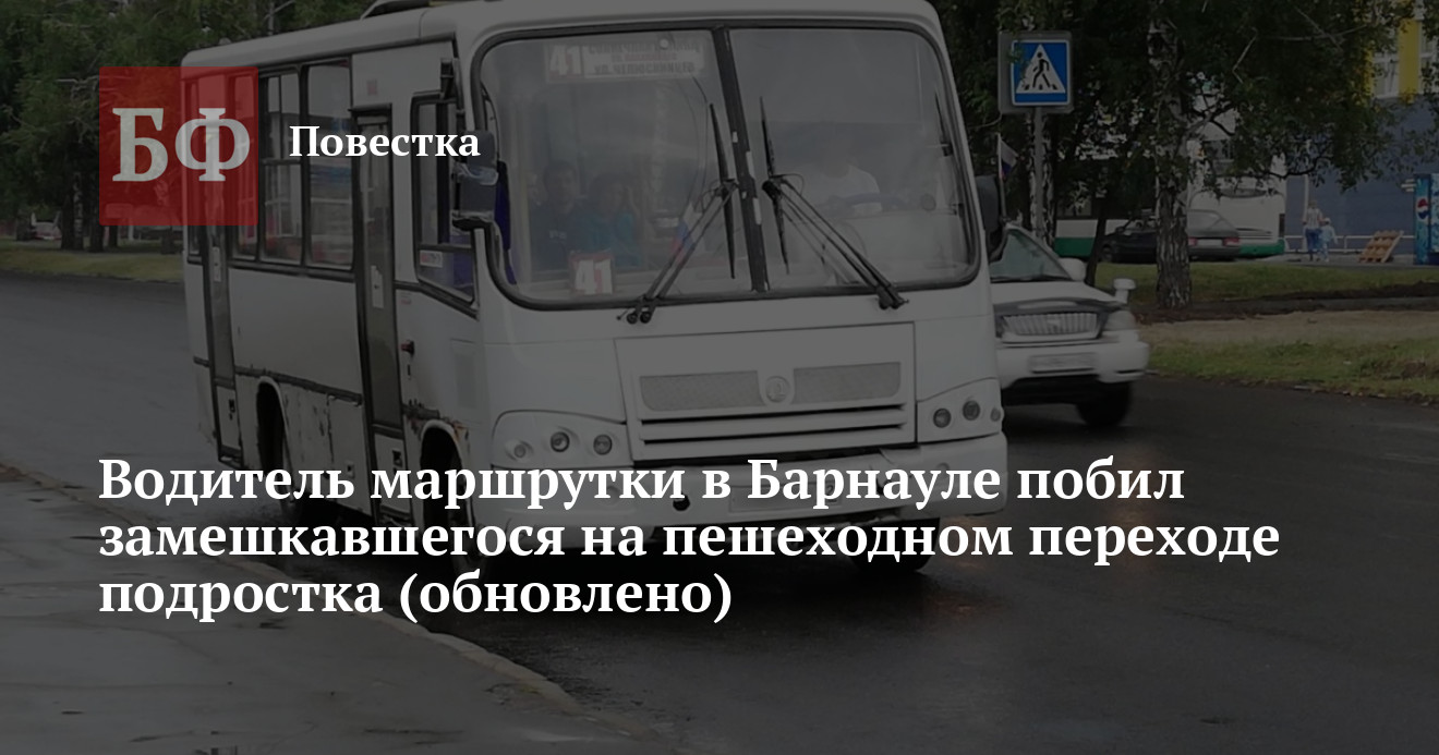 В Барнауле 30 ноября произошел вопиющий случай — водитель маршрутки № 41 напал на 15-летнего подростка, который вместе с товарищем переходил дорогу по пешеходному переходу. Родственники пострадавшего рассказали «Банкфаксу», что поводом для конфликта якобы стало недовольство агрессора неторопливостью молодых людей.