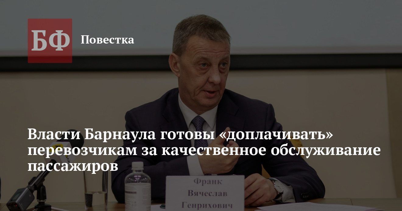 13 декабря в Сибирской медиагруппе прошел брифинг, посвященный крайне болезненной теме пассажирских перевозок Барнаула. В нем приняли участие глава города Вячеслав Франк, вице-мэр по дорожному хозяйству Антон Шеломенцев, зампред профильного комитета по транспорту и связи Валерий Ведяшкин, а также представители перевозчиков — Роман Арапов (ООО «Евробус-плюс») и Николай Усольцев (ООО «Бизнес-авто»).