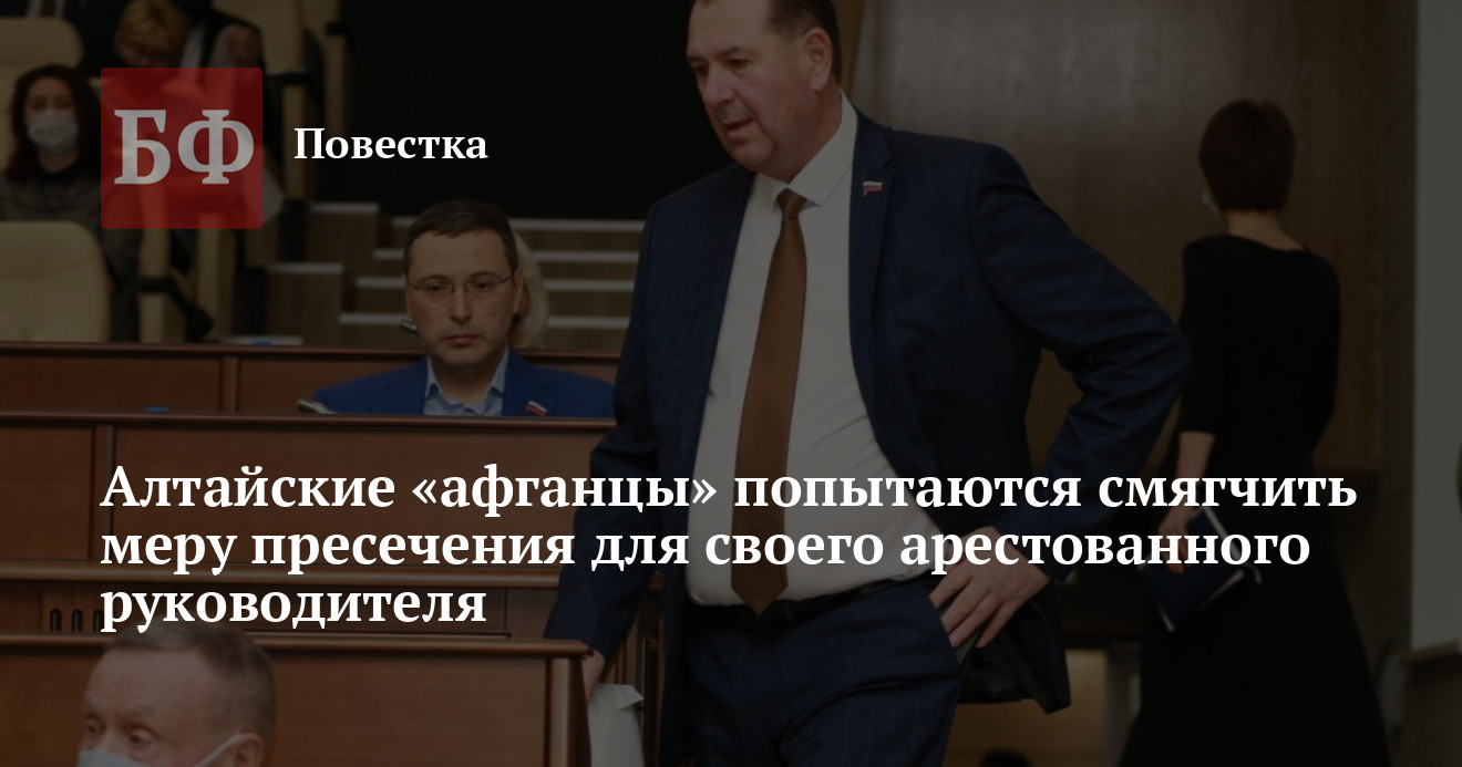 Рабочая группа, сформированная из руководителей ветеранских организаций и местных ячеек, готовит ходатайство, чтобы смягчить меру пресечения для председателя Алтайской краевой организации «Российский Союз ветеранов Афганистана» Сергея Завалихина, которого 9 декабря суд отправил под стражу. Об этом 14 декабря в ходе пресс-конференции рассказал Владислав Павлюков, взявший на себя руководство региональной организацией после задержания председателя.