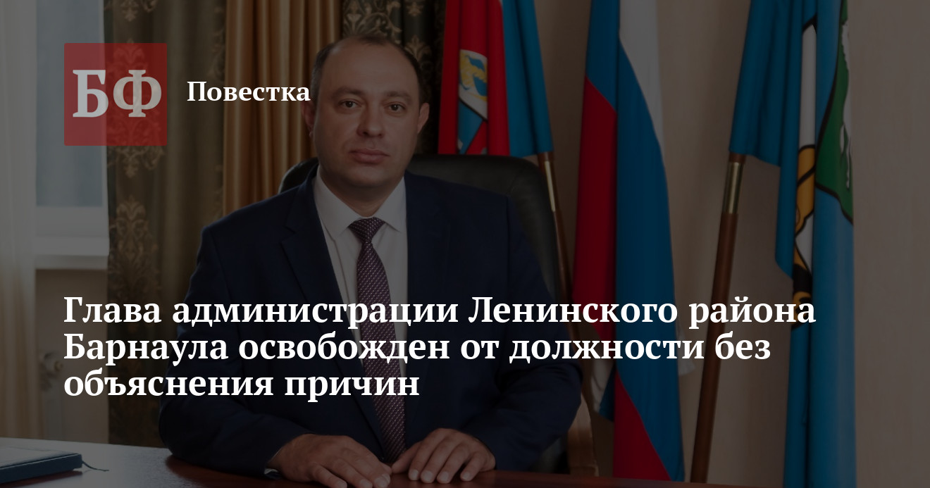 Руководитель Ленинского района Барнаула Александр Михалдыкин освобожден от занимаемой должности решением главы города. В официальном сообщении мэрии Барнаула причины его увольнения не раскрыты. Источники «Банкфакса» не исключают коррупционной составляющей.