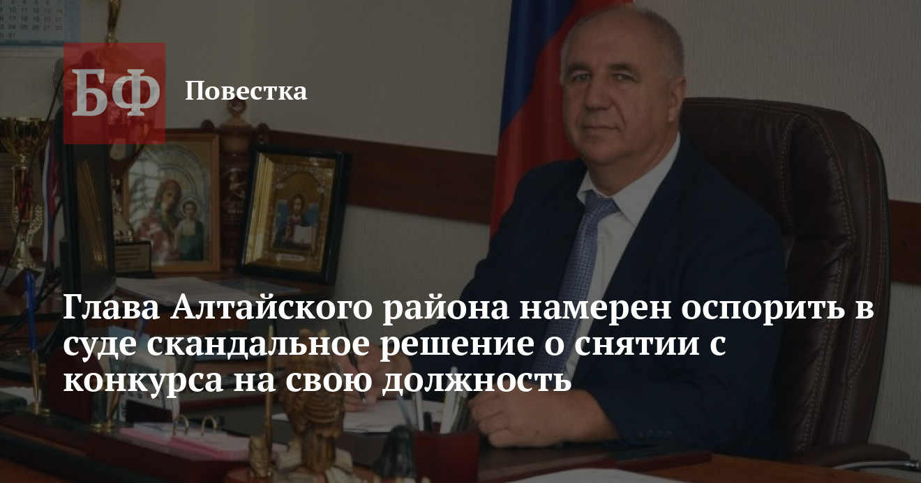Депутаты Алтайского райсобрания сорвали сессию, на которой должны были избрать нового руководителя муниципалитета. Поводом для этого стало решение конкурсной комиссии, которая не допустила до голосования кандидатуру действующего главы Сергея Черепанова. Он рассказал «Банкфаксу», что планирует оспаривать свое снятие с процедуры в суде.