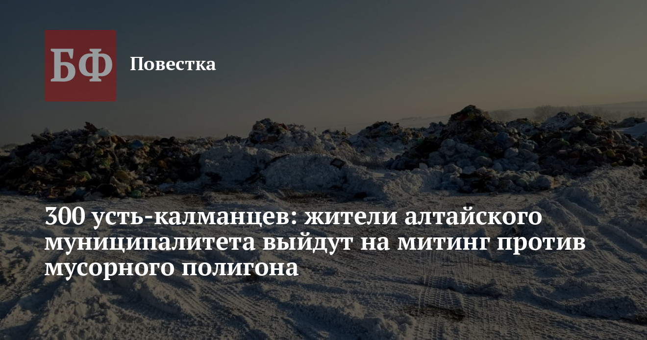 Жители Усть-Калманского района подали уведомление (копия имеется в распоряжении редакции) в администрацию муниципалитета о намерении провести митинг и выразить экологический протест против функционирования скандального полигона. В документе указано, что в публичной акции поучаствуют более 300 человек. Районные власти это мероприятие уже согласовали, следует из ответа, направленного в адрес организаторов. Мероприятие пройдет 25 декабря.