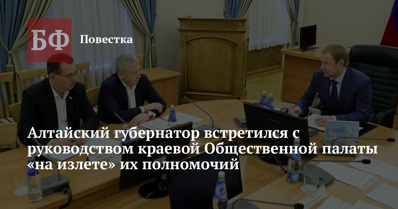 Губернатор Алтайского края Виктор Томенко провел встречу с Советом Общественной палаты региона. Подробности сообщает сообщает пресс-служба регионального кабмина. Находящийся в санкционных списках сразу нескольких стран глава региона заявил, что весь 2022 год прошел под знаком специальной военной операции на Украине и поблагодарил алтайских общественников за помощь ее участникам. По всей видимости это финальная встреча Томенко с нынешним руководством ОПАК — в 2023 году будет сформирован новый состав палаты, очертания которого пока неизвестны.