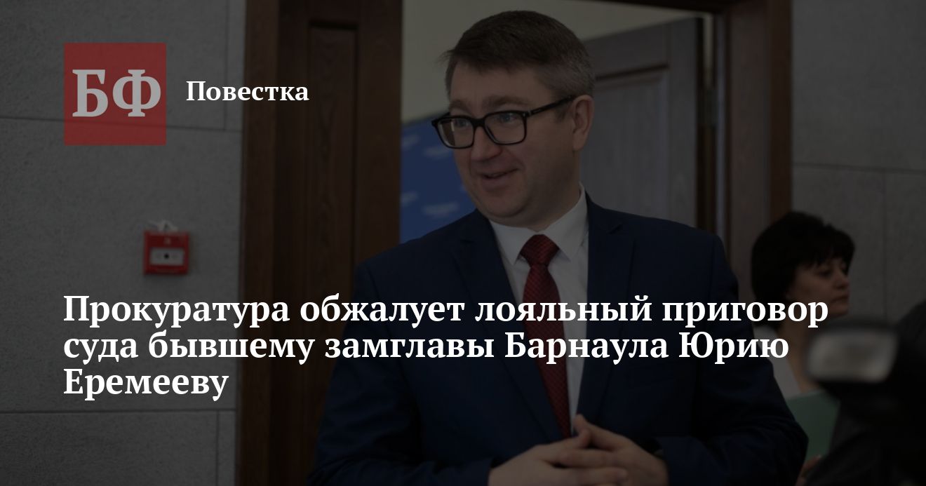 Гособвинитель подал жалобу на вердикт Центрального районного суда, который приговорил экс-замглавы Барнаула Юрия Еремеева за взятку лишь к штрафу и непродолжительному запрету на работу в органах власти. Соответствующая отметка появилась на сайте суда.