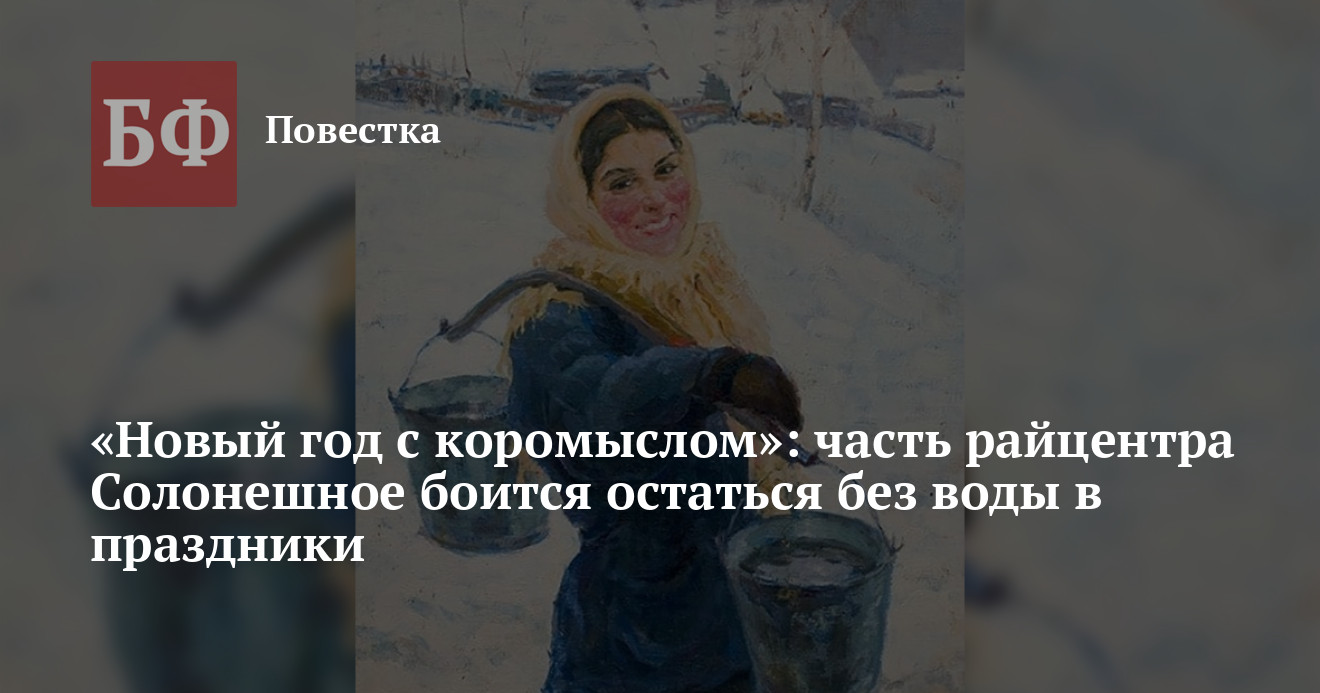 До МУП «Солонешенское», которое находится в стадии банкротства, и районных властей (главы района, его замов и прочих чиновников) ИА «Банкфакс» не удалось дозвониться во время подготовки материала. Между тем жители села пишут в социальных сетях, что на 30 декабря идет шестой день «засухи». У некоторых 29 декабря вода якобы появилась, но течет тонкой струйкой или просто капает из крана. «У кого она и побежала, то бежит тонкой струйкой, значит, что-то не в порядке. <…> Уже зла не хватает, старье латают и ставят, бессовестные. <…> Такое предчувствие, что Новый год мы будем встречать с коромыслом» — к примеру, вечером 29 декабря написала в сообществе «Подслушано Солонешное» в социальной сети «ВКонтакте» жительница дома по улице Сухова, 102.