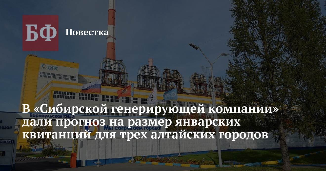 Директор теплосбытового подразделения «Сибирской генерирующей компании» (СГК) Игорь Холодков считает, что жители трех алтайских городов, где присутствует компания — Бийска, Барнаула и Рубцовска — в январе едва ли столкнутся с еще более высокой платой за отопление, чем в декабре. Такие предварительные прогнозы он дал в ходе прямой трансляции в Telegram-канале компании. Тем не менее, Холодков не стал утверждать этого со стопроцентной уверенностью, на чем особо заострил внимание — реальность может оказаться иной.