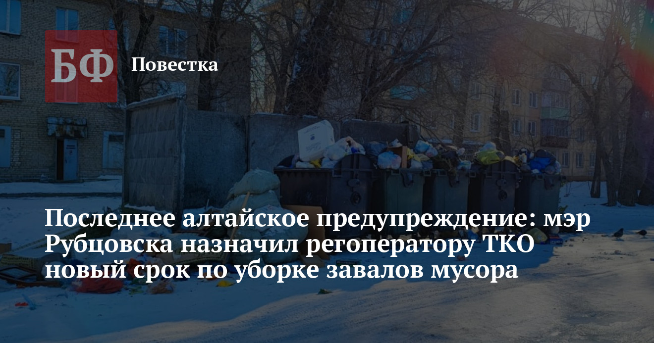 Первый раз в администрации Рубцовска «давали поручения» ООО «Автотранс» 10 января. В этот день начальник управления по ЖКХ и экологии администрации Рубцовска Олег Обухович встречался с заместителем директора компании Олесей Ходцевой. Поводом для этого стала проблема с вывозом мусора — в городе оказались переполнены контейнеры для сбора ТКО, а от жителей стали поступать жалобы. По итогам встречи глава Рубцовска Дмитрий Фельдман поставил перед регоператором задачу до 16 января привести город в порядок.