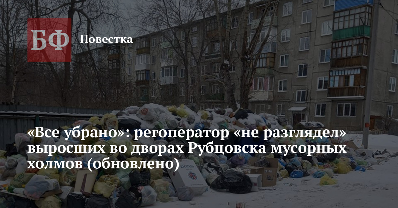UPD 17:22: Как сообщил в своем Telegram-канале глава Рубцовска Дмитрий Фельдман, со слов руководства ООО «Автотранс» в СМИ, мусор, скопившийся в период новогодних каникул, вывезен с контейнерных площадок города. «Однако мониторинг ситуации по данной проблеме мною и работниками администрации города Рубцовска, а также ваши многочисленные сообщения на страницах в социальных сетях, в комментариях городских пабликов о сложившейся ситуации в городе свидетельствуют о том, что ситуация с вывозом мусора остается крайне напряженной. Техника регионального оператора работает в городе, но должного результата по состоянию на 23 января не достигнуто. Руководству регионального оператора рекомендовано в срочном порядке рассмотреть и систематизировать всю технологическую цепочку выполняемых работ и принять меры для нормализации работы по удалению ТКО с территории города в соответствии с заключенными договорами. Администрация города на постоянной основе информирует Минстрой Алтайского края о состоянии дел на текущий момент», — написал Фельдман.
