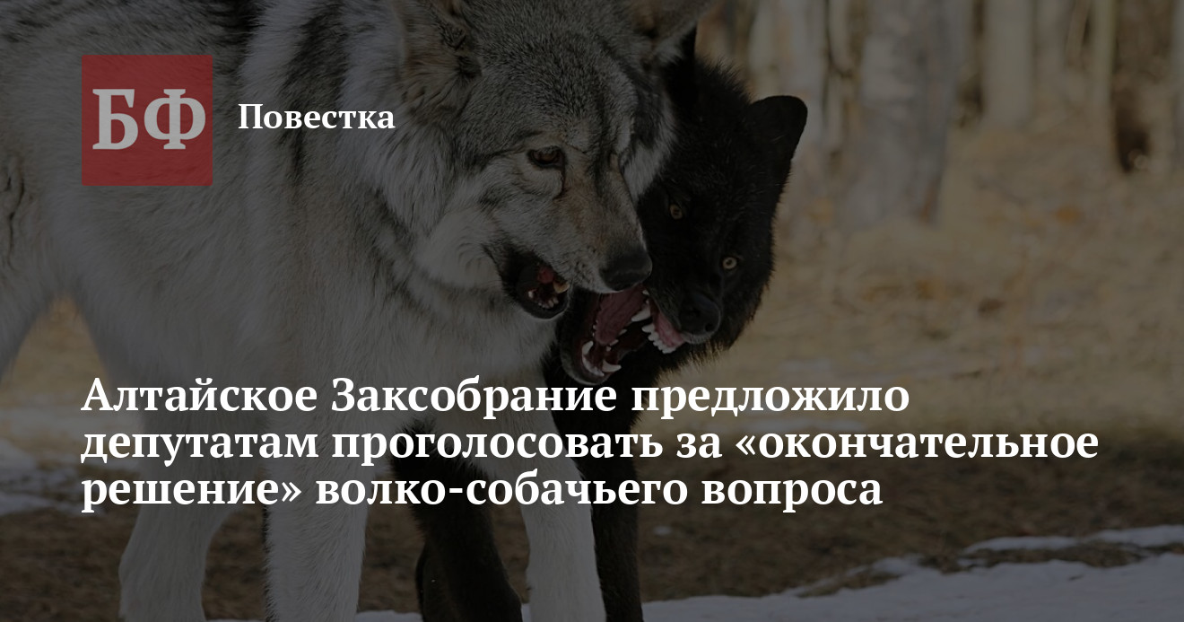 Законопроект о волкособах впервые рассмотрят на сессии в АКЗС 26 января. В пояснительной записке нет даже приблизительных данных о численности таких гибридов в регионе, но при этом указано, что они ежегодно якобы наносят ущерб охотничьему фонду Алтайского края в размере не менее 4,8 млн рублей в связи с истреблением косуль. Парламентарии предлагают отнести гибридов волков и собак к охотничьим ресурсам, разрешив их отстрел. «До 2013 года, согласно Правилам охоты, регулированию численности в течение круглого года подлежали волк, шакал, серая ворона, а также бродячие беспородные собаки. После отмены данных правил на территориях охотничьих угодий Алтайского края стали формироваться колонии одичавших собак, которые впоследствии скрестились с волками. Они наносят ущерб как сельскохозяйственным животным в личных подсобных хозяйствах, так и диким животным в охотничьих угодьях», — аргументируют народные избранники.