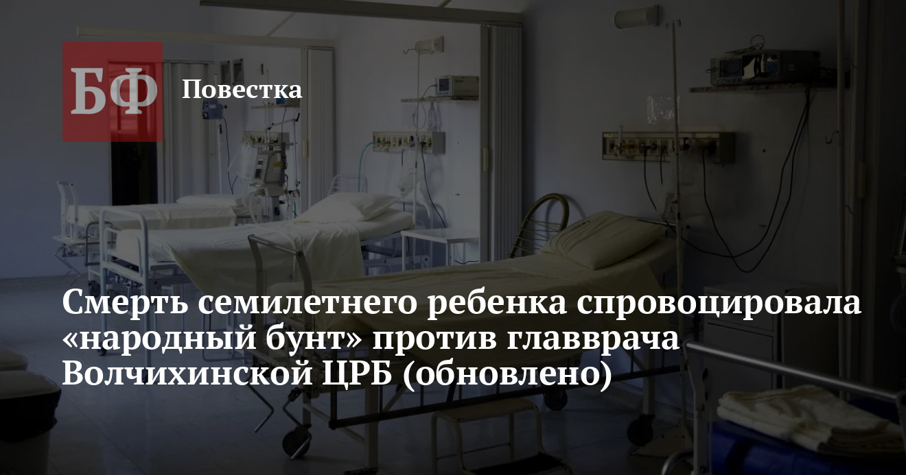О смерти семилетнего мальчика в Волчихинской ЦРБ стало известно 28 января, он скончался минувшей ночью. Жители района рассказали о случившемся в социальных сетях, заявив, что данный летальный случай стал «последней каплей», и они на собрании будут добиваться снятия с должности главврача больницы Татьяны Харловой. «Вчера ночью в Волчихинском районе Алтайского края умер мальчик. Умер от ангины, она его задушила. Мальчика можно было бы спасти, но на дежурстве не оказалось никого, кроме медсестры. <…> Общественность хочет собрать подписи для отставки главврача больницы. И предать огласке то, что по документам у нас в ЦРБ все есть и врачей куча, а на деле никого и ничего», — в частности, написала участница сообщества «Инцидент Барнаул».
