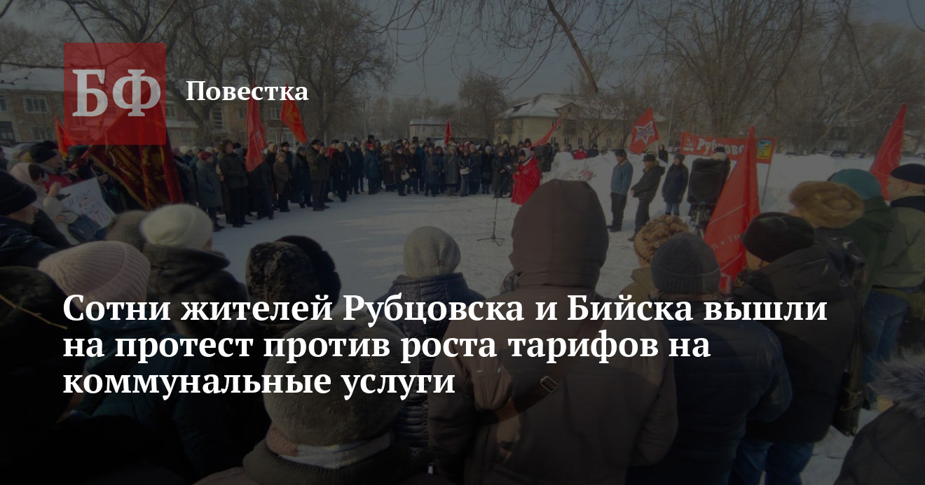 5 февраля в Рубцовске на набережной им. Петрова прошел массовый митинг, организованный КПРФ по теме роста тарифов на ЖКУ и экологических проблем, связанных с вывозом мусора и выбросами загрязняющих веществ с отопительных предприятий. Изначально мероприятие планировалось на площади Ленина, но мэрия города не согласовала это место и в качестве альтернативы предложила другое, так как на запрашиваемой площадке продолжает работать новогодний городок. По подсчетам коммунистов, акцию посетили порядка 300 человек. В мероприятии поучаствовали депутаты разных уровней, в том числе представительница Алтайского края в Госдуме, персек крайкома Мария Прусакова. Отмечается, что по итогам схода собрали более 250 подписей под резолюцией, которую направят в правительства РФ и Алтайского края, администрацию города, а также надзорные органы. Участники потребовали ограничить увеличение коммунальных платежей, проверить их обоснованность, решить экологические проблемы.
