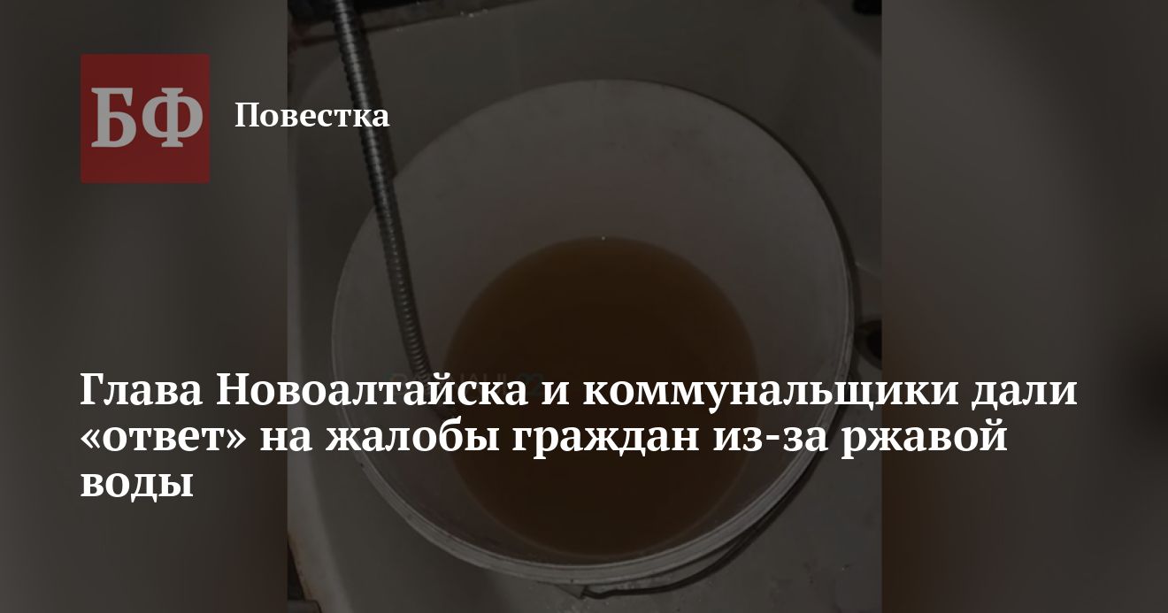 Жительница микрорайона Чесноковка в Новоалтайске показала в социальных сетях, какая вода поступает в ее квартиру из центральной системы водоснабжения. На вид она желтая и мутная, то есть насыщена ржавчиной. Как утверждает горожанка, ее обращения в диспетчерскую коммунальщиков никакого эффекта не возымели. Между тем в «Новоалтайскводоканале» заявили агентству, что к ним не поступало жалоб на воду, и она соответствует установленным требованиям. Глава города Владимир Бодунов в свою очередь рассказал ИА «Банкфакс», что на ржавую воду в Чесноковке жаловались еще в ноябре прошлого года. После этого ресурсовики провели некие мероприятия и проблема была временно решена. Теперь же «Новоалтайскводоканал» планирует уже целый комплекс мер. Каких именно, мэр затруднился уточнить.