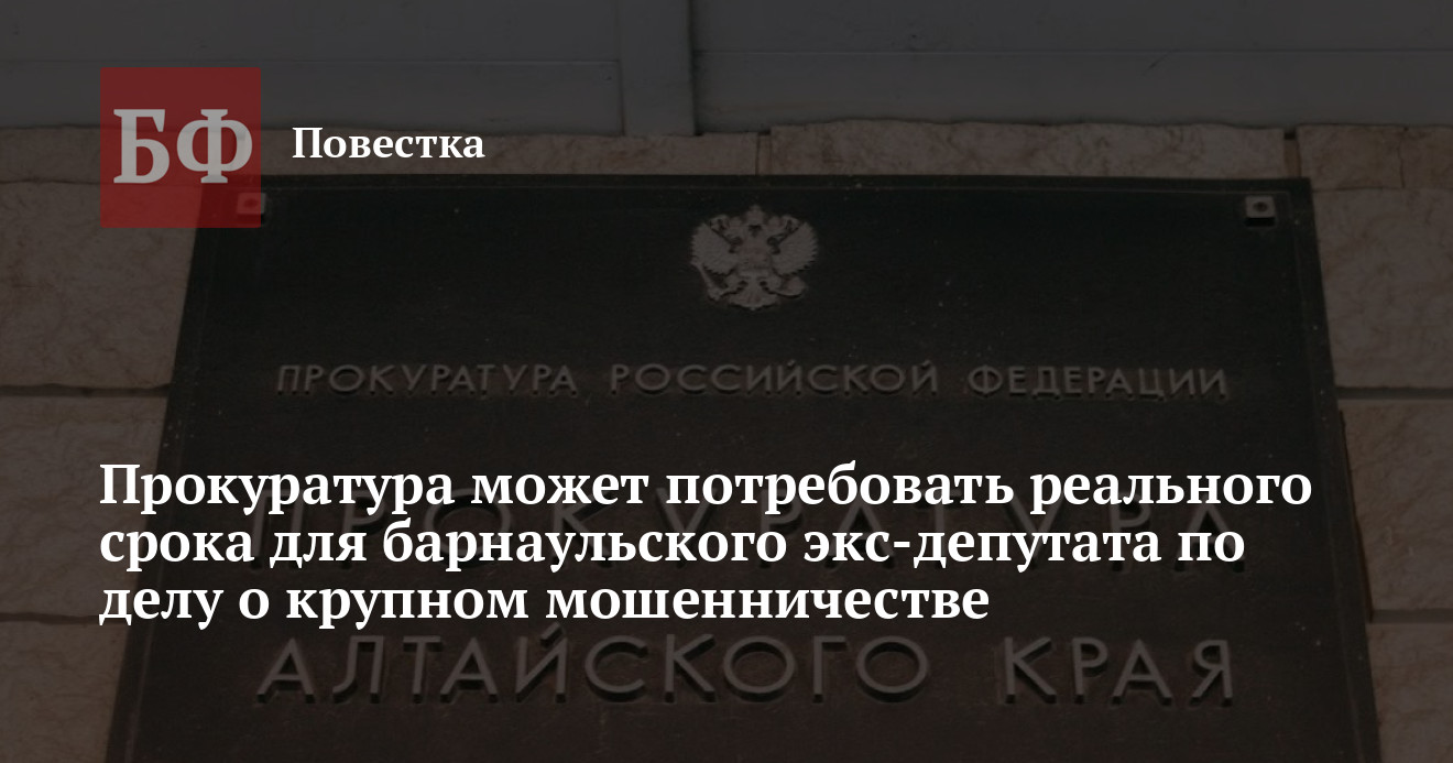 Органы прокуратуры проверят законность приговора Центрального районного суда Барнаула предпринимателю Артуру Манасяну и бывшему депутату местной Гордумы, предпринимателю Ивану Куцу — сыну экс-депутата АКЗС и действующего зампреда Общественной палаты Алтайского края Василия Куца. Оба дельца за крупное мошенничество отделались лишь штрафами. Однако краевое надзорное ведомство в ответе на запрос «Банкфакса» указывает, что обвинение требовало реального лишения свободы для подсудимых. Не исключено, что прокуратура будет настаивать на этом в апелляции.