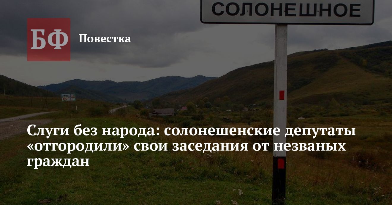 В феврале текущего года Солонешенский райсовет утвердил порядок присутствия физических и юридических лиц, а также представителей общественных организаций на открытых сессиях. Текст решения опубликовала местная газета «Горные зори». Теперь для того, чтобы попасть на заседание, гостю не позднее, чем за два рабочих дня до сессии, нужно будет подать письменное заявление, притом, что на объявление о проведении собрания депутаты отвели себе минимум пять календарных дней. На основании поступивших заявлений спикер представительного органа будет принимать решение о возможности присутствия граждан, исходя из количества свободных мест в зале. Притом в расчет будут брать не все имеющиеся места, а лишь часть — минимум установлен в размере 10% от общего числа. Если заявок будет больше, чем мест, то сперва будут допускать представителей юрлиц, затем — общественных организаций, а физлиц — в последнюю очередь, ранжируя заявки по дате их подачи.