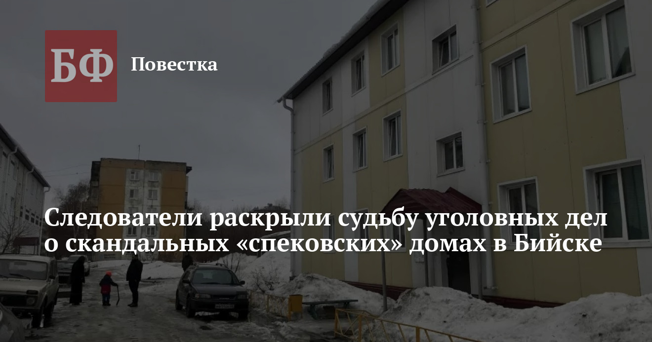 Ранее инсайдеры сообщали, что сотрудники СУ СКР по Алтайскому краю посетили администрацию наукограда 16 марта. Визит связывали с так называемыми «спековскими» домами. Новый виток интереса к ним наблюдатели объясняли недавним указанием председателя СК РФ Александра Бастрыкина провести служебную проверку в отношении алтайского следкома из-за волокиты при расследовании нескольких уголовных дел по этим зданиям. Также Бастрыкин поручил провести строительно-техническую экспертизу самих зданий в Судебно-экспертном центре СК и доложить о причинах прекращения одного из дел в отношении должностных лиц администрации по п. «в» ч. 3 ст. 286 УК РФ (превышение должностных полномочий). Его фигурантом был на тот момент замглавы Бийска Дмитрий Маслюк, принявший непригодные для проживания объекты на баланс города. Разбирательство тянулось почти два года, но в итоге его прекратили в связи с истечением сроков давности.