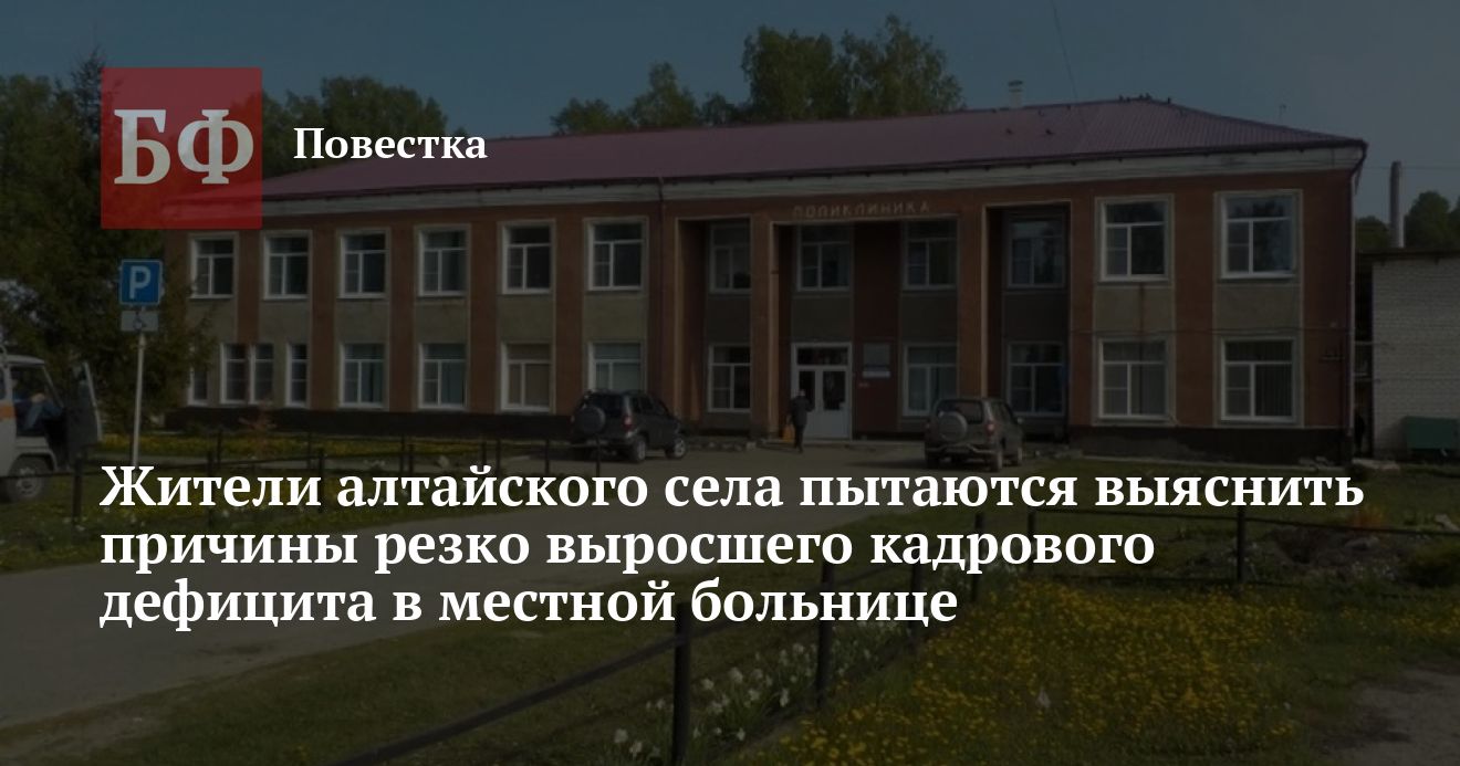 В алтайском селе Налобиха, где проживает около 4 тысяч человек, закрыли круглосуточный стационар и отделение скорой помощи за неимением кадров. По словам местной жительницы Анастасии Дрюмовой, с оказанием срочной медпомощи возникли проблемы из-за массового увольнения специалистов.