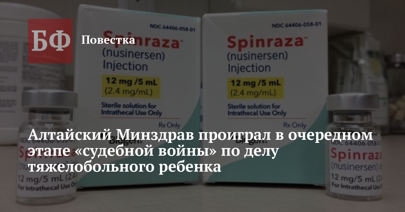 История о том, как долго Минздрав Алтайского края не обеспечивал сына Романа Чепуштанова из Барнаула препаратом «Спинраза», широко освещалась СМИ. В связи с заболеванием сына родители изначально были вынуждены обращаться к благотворителям, те помогли получить лекарство, одна инъекция которого стоит около 5 млн рублей, вводили его в Израиле. К сведению, «Спинраза» назначается пациентам СМА пожизненно. В первый год лечения требуется шесть доз, в последующие — по три.