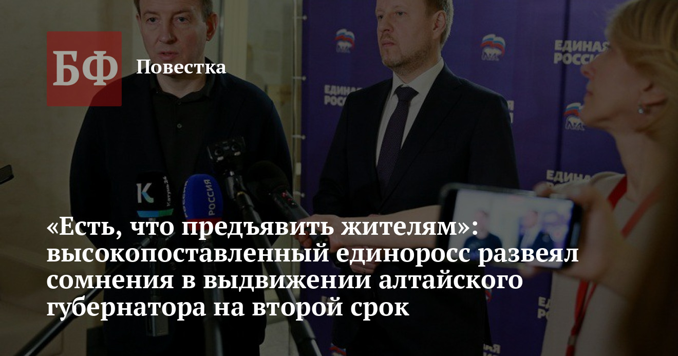 Отметим, что некоторые эксперты и представители местной оппозиции до последнего момента не были уверены в намерениях федеральных кураторов по поводу кандидатуры следующего губернатора Алтайского края, однако Турчак попытался развеять эти сомнения. Он заявил, что положительные изменения в регионе под управлением нынешнего руководителя ему очевидны при каждом визите. «Честно говоря, меня всегда удивляли слухи и какие-то домыслы о том, пойдет ли Виктор Петрович на очередной срок, и будет ли его поддерживать „Единая Россия“. Начну с того, что он член партии, член президиума регионального политсовета. С ним мы прошли не одну избирательную кампанию: два последних электоральных цикла — выборы депутатов Госдумы и прошлогодние выборы органов местного самоуправления. Сформирована команда губернатора, которой есть что предъявить жителям Алтайского края — избирателям — за прошедшие пять лет», — сказал секретарь Генсовета ЕР.