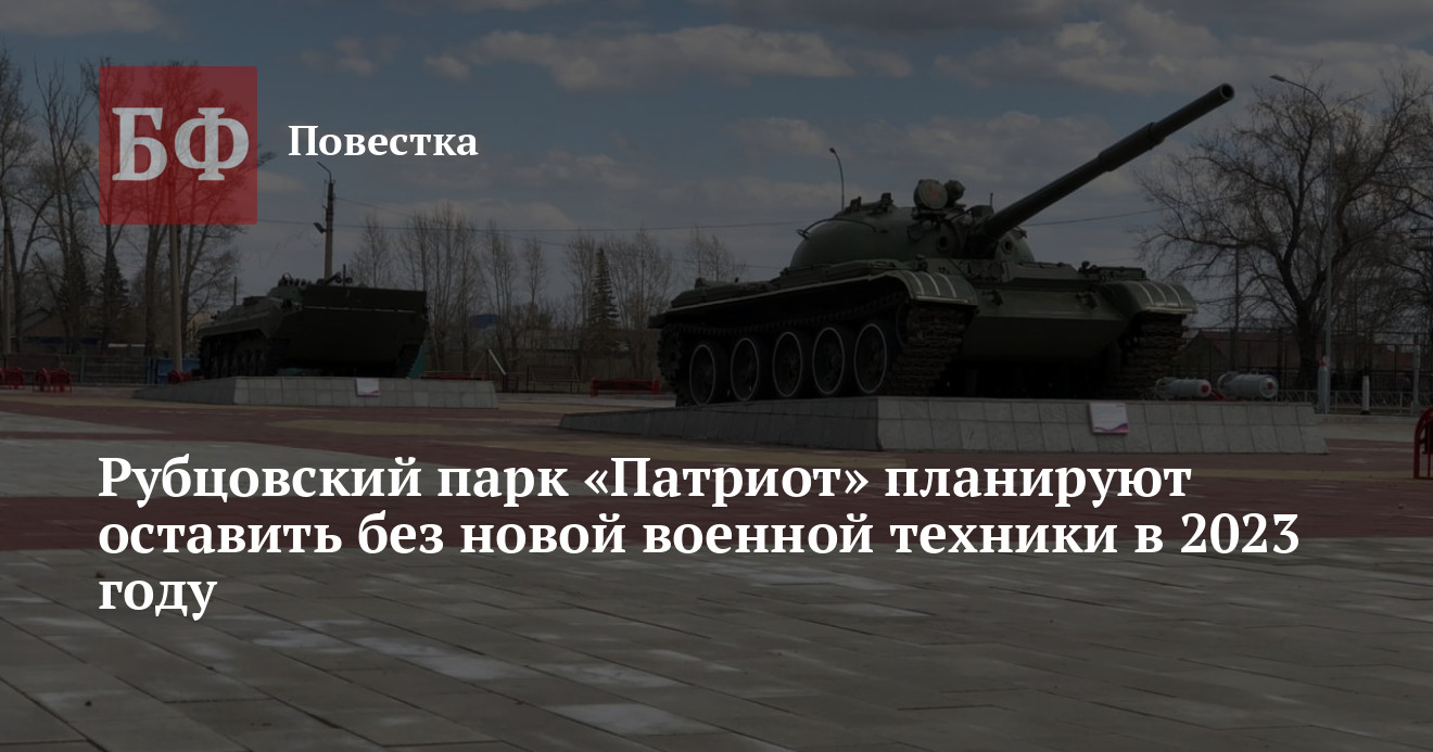 Ранее стало известно, что в результате действий администрации Рубцовска и руководства спортшколы «Юбилейная», которое управляет парком «Патриот», на металлолом продали несколько единиц техники. Речь шла о БТР-60П и катере «Восток», на которых удалось заработать почти 52 тысячи рублей. При этом бронемашину город получил безвозмездно из федеральной собственности от Росимущества с конкретным указанием на то, что она предназначена для экспонирования в парке.