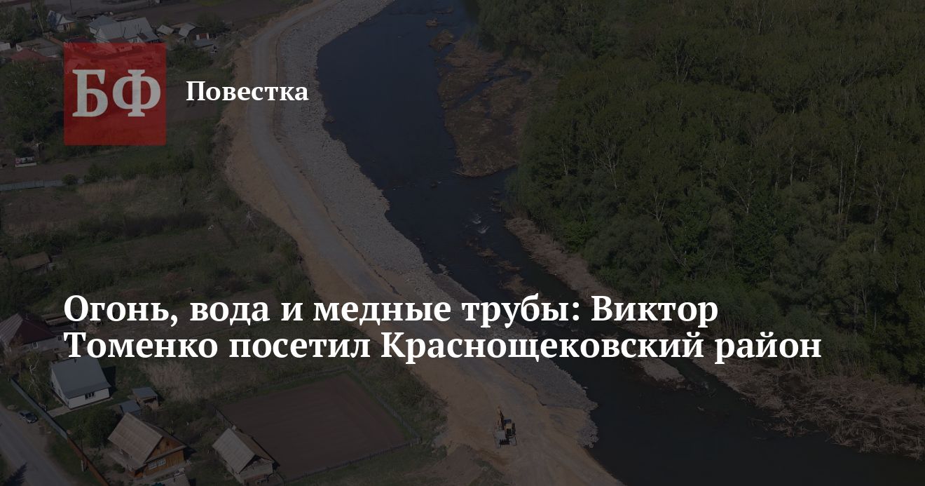 Губернатор Алтайского края побывал в райцентре Краснощеково, где оценил ход строительства сети гидрозащитных сооружений на Чарыше, а также масштабы пожара на местной свалке. Как сообщает пресс-служба правительства региона, посетил Томенко и местные социальные объекты, на которых недавно завершились ремонтные работы.
