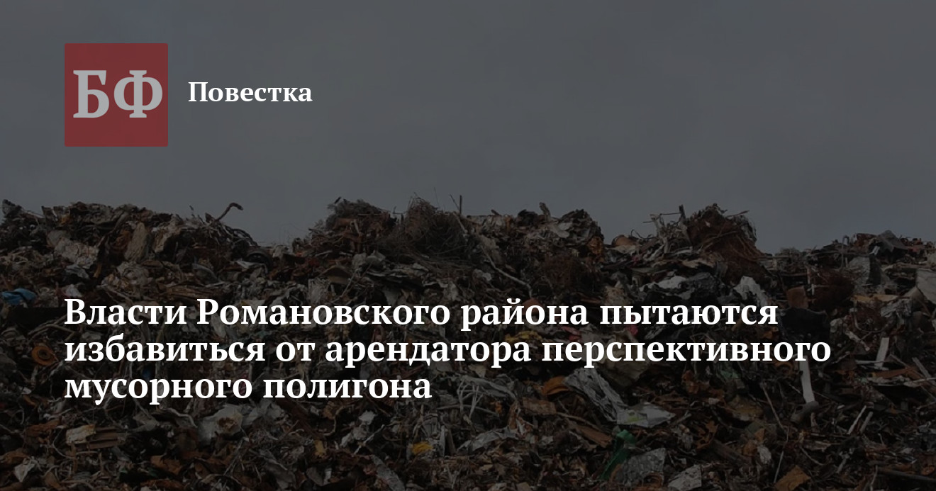 Предполагается, что администрация Романовского района рассматривает несколько вариантов развития событий. По некоторым данным, чиновники уже пообщались с некоторыми компаниями мусорной отрасли на тему передачи полигона в аренду. Поскольку, к примеру, те же регоператоры включены в ГРОРО, бюрократические вопросы в таком случае решились бы более оперативно, хотя право аренды площадки пришлось бы разыгрывать на торгах.