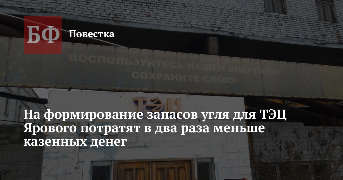 26 мая муниципальное предприятие «ЯТЭК» объявило о поиске поставщика каменного угля для ТЭЦ Ярового. По данным портала Госзакупок, МУПу необходимо 69 тысяч тонн топлива. Весь объем разобьют на пять поставок, первая начнется в июле, а последняя должна быть выполнена до конца октября. Начальная максимальная цена составила 372,6 млн рублей, то есть по 5400 рублей за одну тонну. При этом в проекте контракта прописано, что каждая поставка будет авансироваться в размере 100%. Заявки на участие в тендере принимаются до 14 июня, а итоги процедуры подведут 16 июня.