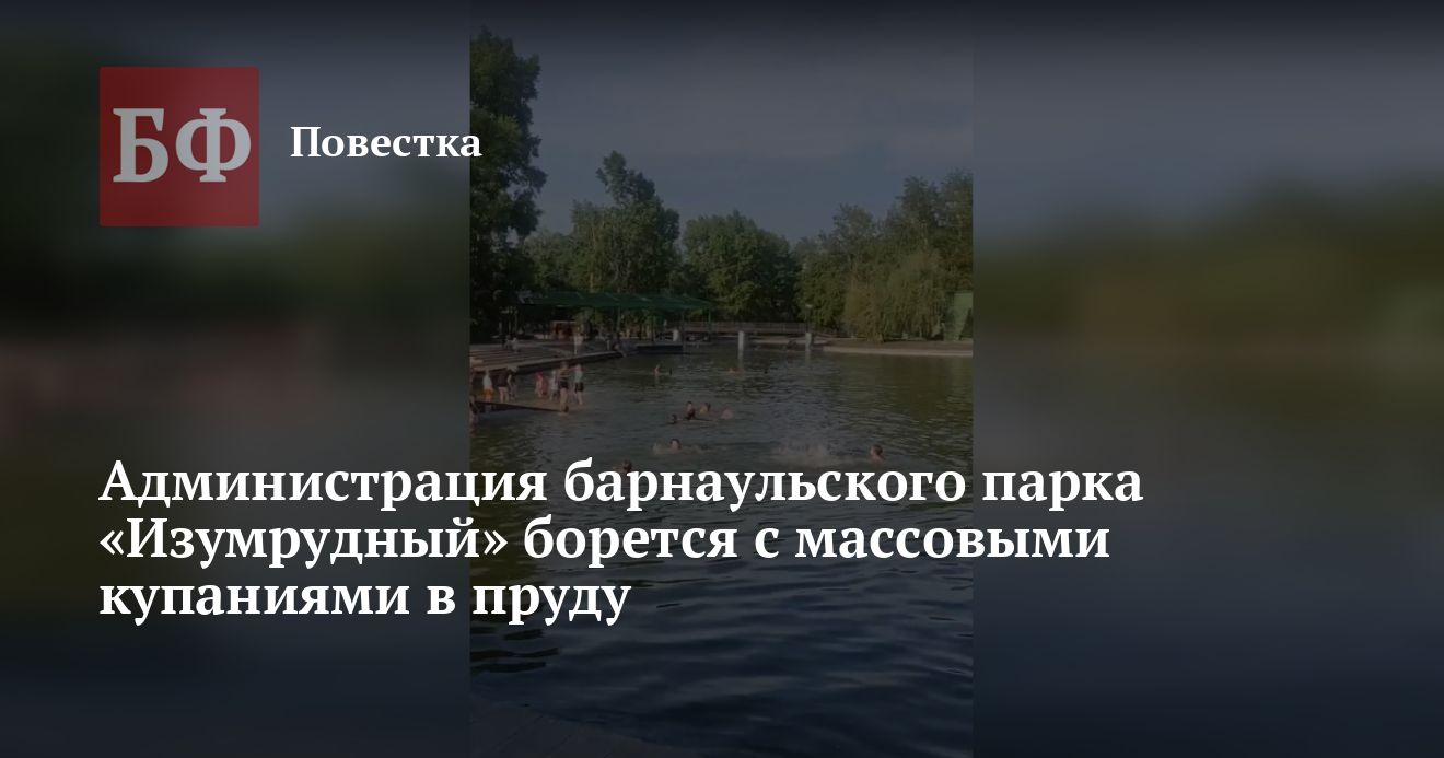 Пруд барнаульского парка «Изумрудный» в последние недели стал напоминать общественный бассейн. В декоративном водоеме, не предназначенном для купания, резвится масса детей, а порой и взрослых. На замечания администрации и охраны парка несовершеннолетние никак не реагируют, утверждает Владислав Вакаев. «Беспредел там продолжается. Я очень рассчитываю на помощь правоохранителей. Пруд стал местом притяжения зачастую не самых благополучных детей. Это сильно тревожит меня, поскольку сопряжено с большими угрозами для их жизни и здоровья», — выразил обеспокоенность управляющий парком.