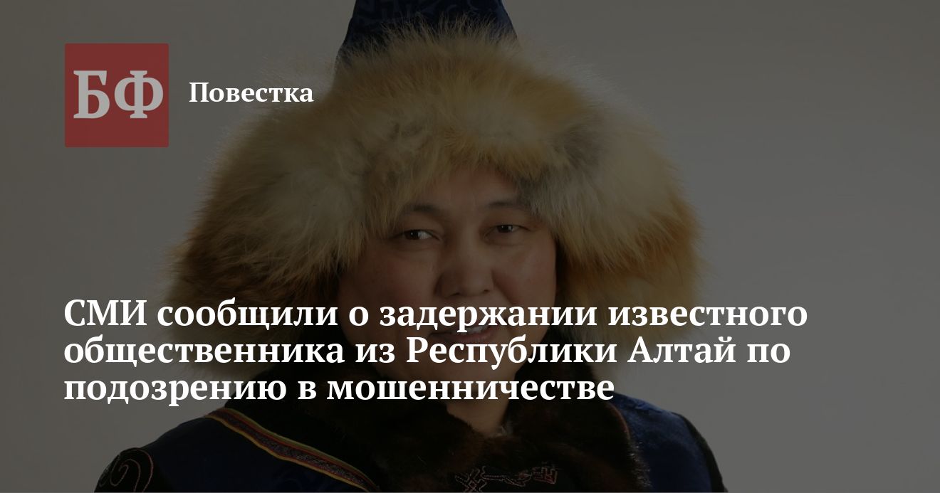 В Подмосковье арестовали Акая Кине — известного в Республике Алтай общественника, которого полтора года назад коренные жители региона избрали Эл Башчы (духовного лидера) алтайского народа. По данным источников «Коммерсанта», ему якобы вменяют участие в крупной мошеннической схеме на 55 млн рублей. Предполагается, что он провернул аферу совместно с сотрудником силовых структур, который уже осужден.