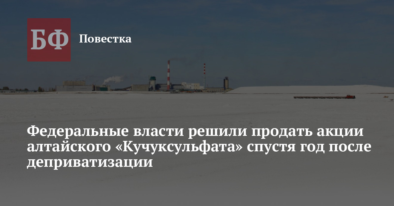 Правительство РФ согласилось с предложением федерального Минфина о продаже полного пакета акций АО «Кучуксульфат». Согласно распоряжению кабмина, опубликованному на официальном портале, Росимуществу поручено подготовить процедуру приватизации предприятия и определить его рыночную стоимость. В собственность государства завод вернулся всего год назад.