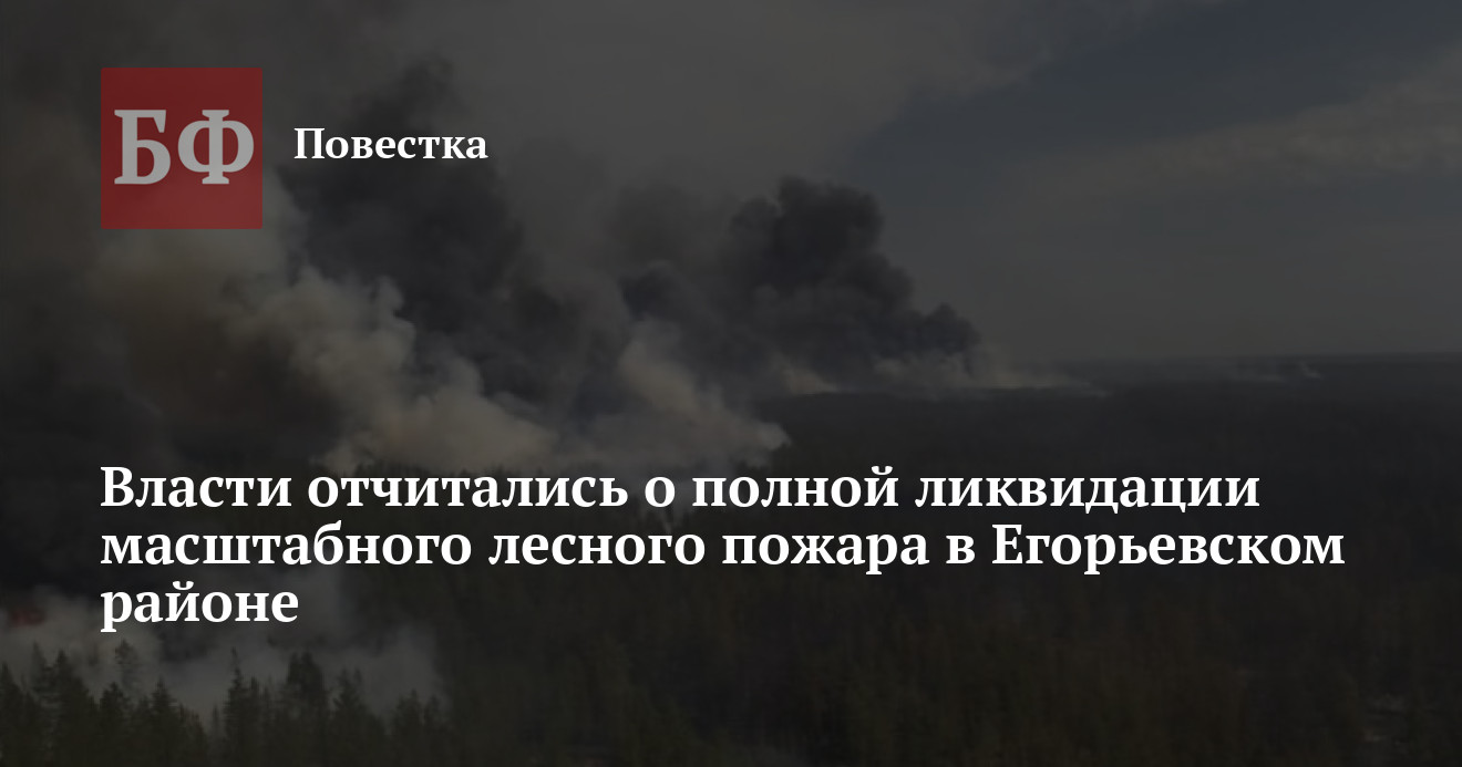 Лесной пожар, который возник на территории Ракитовского лесничества в Егорьевском районе 7 июня из-за сухой грозы, бушевал целую неделю. Несмотря на то, что его локализовали 10 июня, дотушивать огонь пришлось еще несколько дней. Полностью ликвидировать возгорание удалось только в 23:00 14 июня. В течение пяти дней специалисты собираются определить точную площадь леса, пройденную огнем, а также подсчитать нанесенный ущерб.