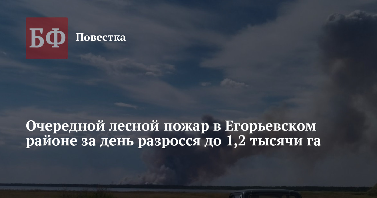 Очередной лесной пожар на территории Егорьевского района вспыхнул днем 19 июня. Изначально в Минприроды сообщали о том, что ориентировочная площадь, охваченная огнем, составляет порядка 633 га. Однако уже утром 20 июня в ведомстве указали, что эта территория увеличилась до 1,2 тысячи га. С огнем борется внушительная группировка сил и средств: почти 200 человек и свыше 70 единиц техники. Задействованы силы и средства КАУ «Боровлянский лесхоз», КАУ «Алтайлес», краевого ГУ МЧС и арендаторов лесных участков. В холдинге «Алтайлес» уточняют, что на месте также работают сотрудники их предприятий: ООО «Лебяжье-Лес», ООО «Вострово лес», ООО «Лесное», ООО «Лес Сервис», ООО «Корал», ООО «Новичиха лес», ООО «Содружество», ООО «Каменский ЛДК», ООО «Ребрихинский лесхоз» — всего 73 человека и свыше 40 единиц техники. Также для тушения пожара с воздуха задействован самолет-амфибия Бе-200 ЧС.