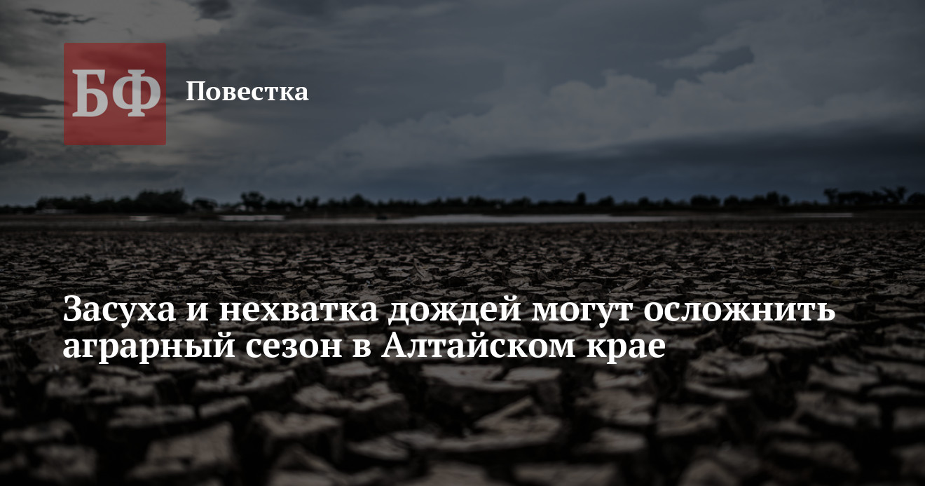 Высокая температура воздуха и недостаточное количество осадков могут негативно сказаться на урожае в Алтайском крае в этом году. Об этих опасениях рассказал глава профильного комитета регионального Заксобрания Сергей Серов. По его мнению, ситуация в этом аграрном сезоне сложная, но пока не критическая.