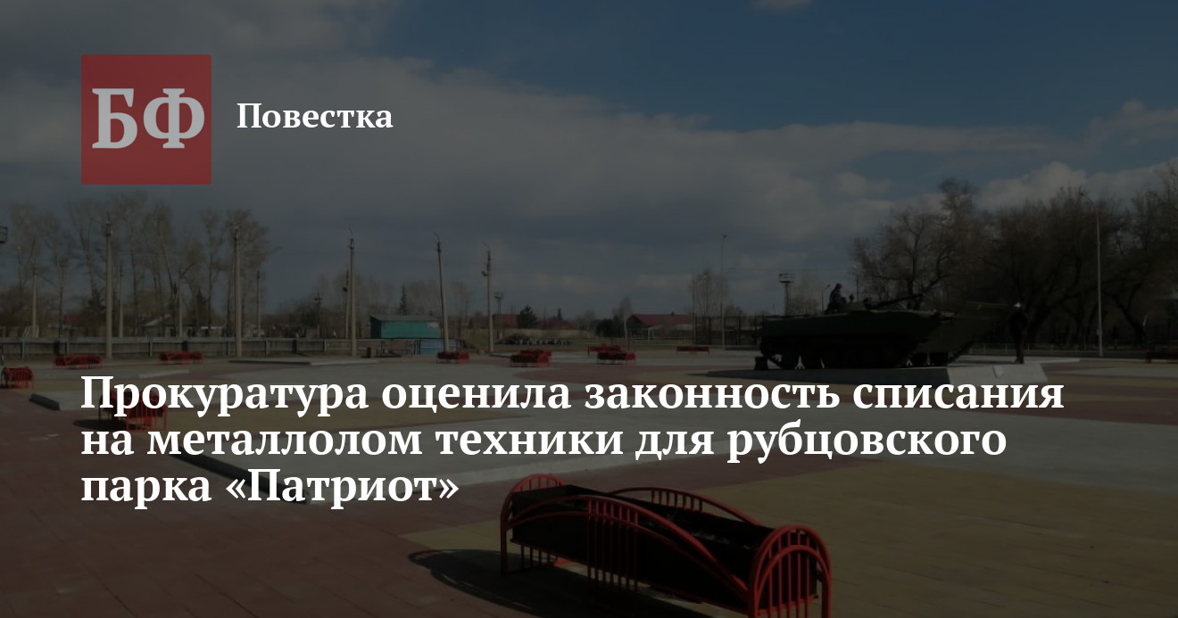 Сенатор от Алтайского края Виктор Зобнев получил ответ от прокуратуры по поводу списания техники, подаренной Рубцовску для экспонирования в местном парке «Патриот». На своей странице «ВКонтакте» он написал, что надзорное ведомство пришло к выводу о незаконности акта о списании несостоявшихся экспонатов. Кроме того, прокуратура не заметила, чтобы городские власти стремились исправить огрехи с разрушающимися элементами благоустройства территории. Материалы проверки направили в органы следствия для дальнейшего разбирательства.
