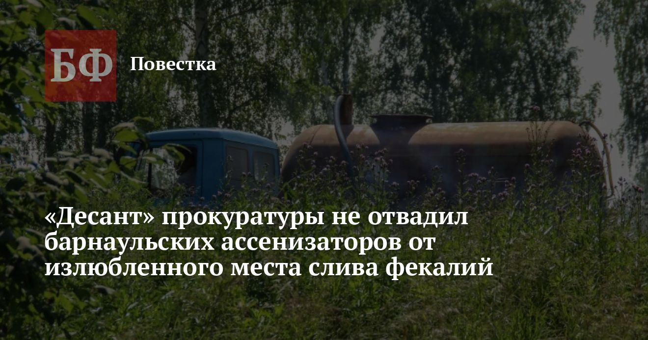 Как пишет «Толк», район полей фильтрации Алтайского государственного аграрного университета «черные» ассенизаторы используют для слива ЖБО больше 10 лет. Об этом изданию еще минувшей зимой рассказывали жители близлежащего поселка Пригородный, которые страдают от доносящегося с тех мест зловония. Чтобы отвадить нелегалов, люди обращаются в природоохранную прокуратуру и полицию, но проблема, по их словам, остается актуальной.