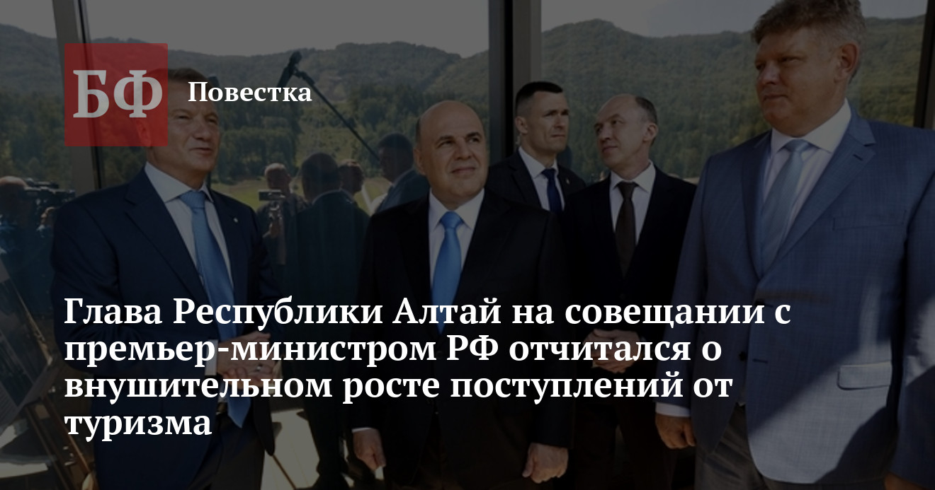 Налоговые поступления от туристической отрасли в консолидированный бюджет Республики Алтай по итогам 2022 года выросли на 53% к предыдущему аналогичному периоду. Об этом глава региона Олег Хорохордин рассказал на совещании о развитии туризма и индустрии гостеприимства в России, которое проходит 26 июля в РА при участии премьер-министра страны Михаила Мишустина. Об этом пишет пресc-секретарь Хорохордина Михаил Максимов в своем Telegram-канале.