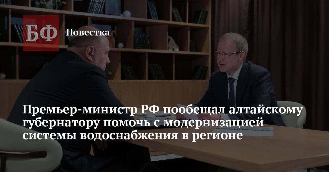 Кроме того, Виктор Томенко попросил Михаила Мишустина оказать помощь в решении крайне актуальной для ряда территорий Алтайского края проблемы водоснабжения. «Две трети жителей края пользуются артезианскими скважинами. При этом исторически так сложилось, что вода в крае жесткая. Нужно применять современные системы очистки, заниматься бурением дополнительных скважин и ремонтировать и строить новые сети. На работы в 56 населенных пунктах края, где живут 84 тысячи человек, необходимо дополнительно около 200 млн рублей», — пояснил глава региона.
