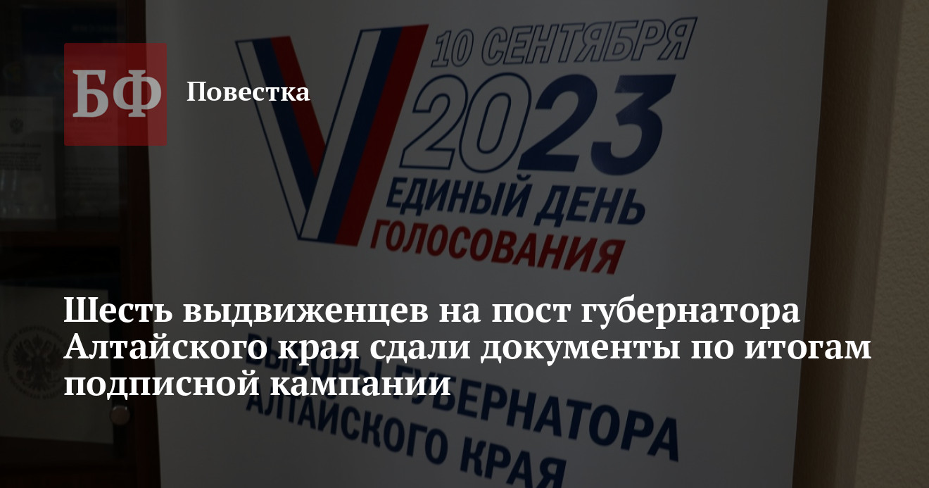 В Алтайском крае завершилась процедура сдачи документов от кандидатов, выдвинувшихся на пост губернатора. К окончанию сбора подписей в рамках муниципального фильтра в Избирательную комиссию региона для регистрации обратились шесть претендентов.