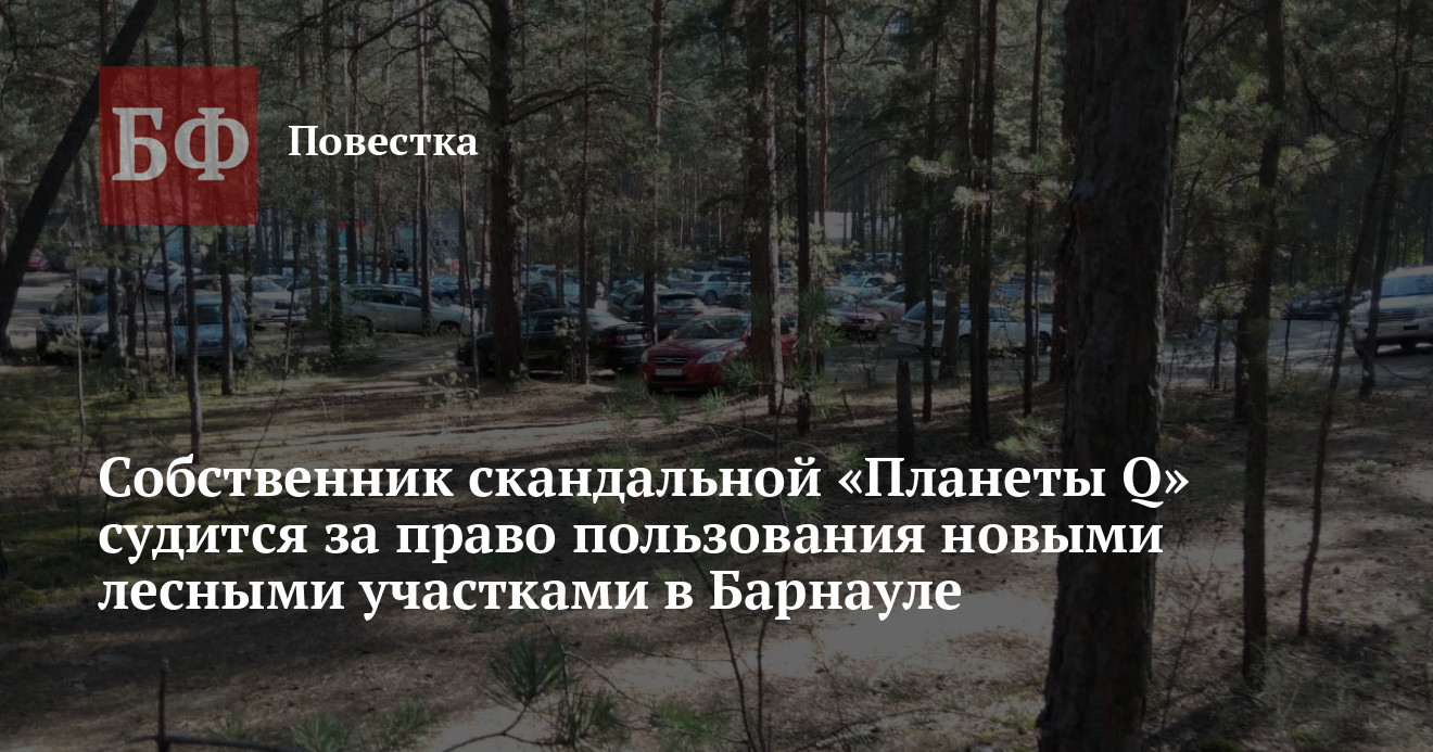 26 июля Арбитражный суд принял к производству исковое заявление ООО «Первая строительная компания» к Минприроды Алтайского края о признании незаконным отказ ведомства в выдаче разрешения на использование двух лесных участков под скважины. Площадь одного из них составляет 1,3463 га, а второго — 0,9091 га. Судя по указанным в иске координатам, они находятся поблизости от развлекательного комплекса «Планета Q», который в ближайшее время «прирастет» парком культуры и отдыха. Землю под объект площадью 2,7 га Юрий Погуляев арендовал в прошлом году. Предположительно, локации в лесу нужны, чтобы обеспечить «Планету Q» водой: в действующем заведении есть бассейны, а еще один планируют сделать в строящемся парке.