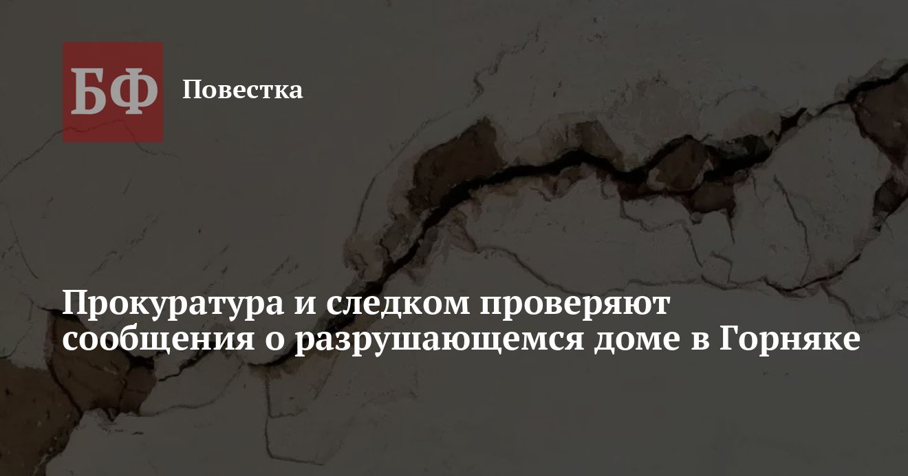 СУ СКР по Алтайскому краю и региональная прокуратура инициировали проверочные мероприятия по материалу «Толка», в котором сообщается о разрушающемся многоквартирном доме в Горняке. О проблеме изданию рассказала местная жительница Марина Лещенко. Она полагает, что дом необходимо признать аварийным и расселять его жителей, а пока такие решения не приняты, жизни людей находятся в опасности.