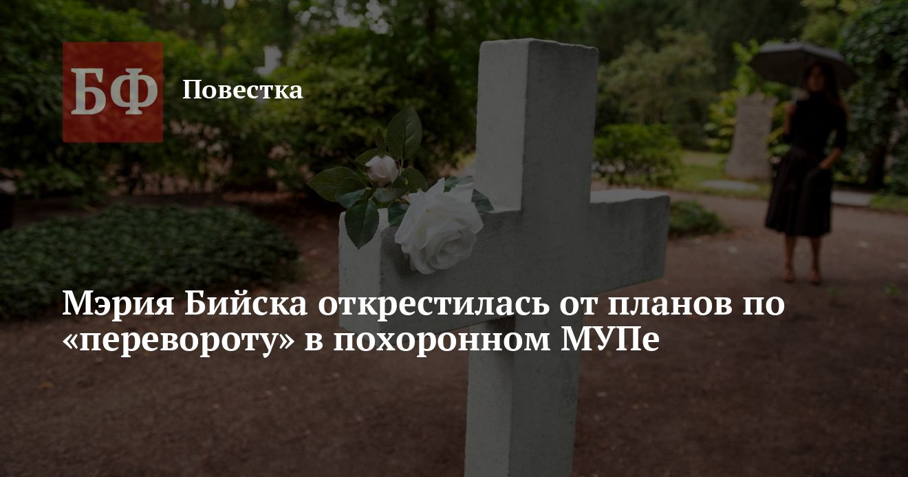 В администрации Бийска не рассматривают вопрос о смене руководства оказывающего ритуальные услуги МУП «Память» в рамках предстоящей реорганизации. Об этом в мэрии наукограда сообщили в ответ на запрос ИА «Банкфакс». При том конкретные сроки преобразования «Памяти» в МБУ чиновники не уточнили.