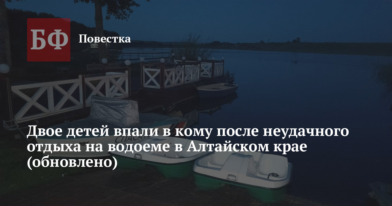 UPD 12:57: Прокурор Алтайского края Антон Герман инициировал разбирательство в связи с травмированием двоих детей 12 и 17 лет. Из сообщения ведомства стало известно, что на водоеме отдыхала семья из четырех человек. В результате столкновения надувного плота, прикрепленного к гидроциклу, с деревянным пирсом оба ребенка получили комплексные телесные повреждения и были госпитализированы в медицинское учреждение. Территориальному прокурору поручено провести проверку причин и условий случившегося, дать оценку работе органов системы профилактики.