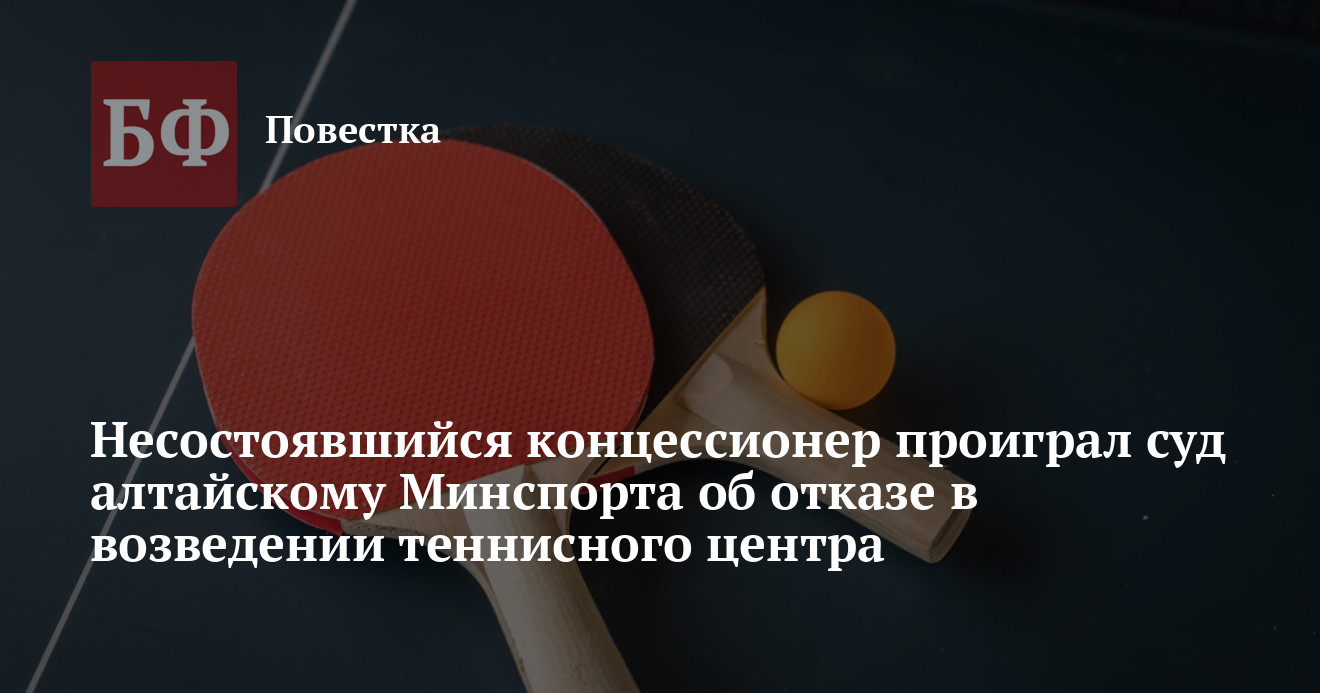 Суд вынес решение по иску компании «Кайрос», которая получила отказ Минспорта Алтайского края в строительстве Регионального центра настольного тенниса. Она пыталась признать недействительным соответствующее решение ведомства, но арбитраж требования не удовлетворил, следует из материалов процесса. В ходе разбирательства выяснилось, что проект не стали начинать из-за нехватки денег в бюджете и отсутствия экономического плана.