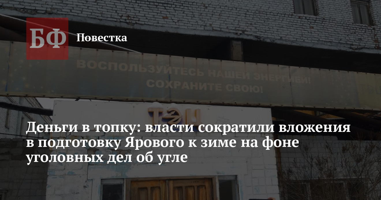 Запасать топливо на всю зиму одним тендером решили при участии профильного вице-губернатора Алтайского края Александра Климина. Известно, что он лично курировал процедуру в 2022 году и был в курсе поступивших коммерческих предложений. Также он отмечал, что уголь нужно приобрести определенной марки — с техническими характеристиками, которые подходят для котлов ТЭЦ. Вопрос был актуален на фоне того, что в 2021 году несколько поломок из-за зашлаковывания агрегатов привели к перебоям с теплоснабжением в Яровом.