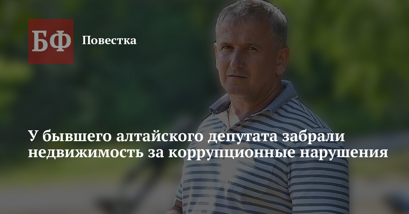 Прокуратура взыскала с бывшего депутата Алтайского Заксобрания Максима Степина недвижимость, которую он приобрел на неподтвержденные доходы в нарушение антикоррупционного законодательства. По сообщению ведомства, он также должен был отдать государству автомобиль, но вместо этого пришлось брать деньгами, так как собственник привел машину в непригодное для эксплуатации состояние.