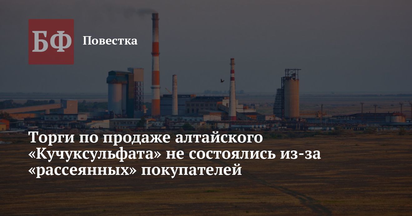 20 сентября, согласно данным ГИС «Торги», стартовал анонсированный аукцион по продаже 132 480 обыкновенных именных акций АО «Кучуксульфат» (100%) в бездокументарной форме. Начальная стоимость составила 10,36 млрд рублей. Шаг аукциона — 518 млн рублей. К концу этапа подачи заявок (16 октября) пакеты документов поступили только от двух лиц — молодой московской компании «Ибрис» и предпринимателя Дениса Избрехта. Однако обе этих заявки оказались отвергнуты комиссией. Так, «Ибрис» не предоставил доказательства того, что перевел задаток в установленный срок, а Избрехта не допустили из-за неполного пакета поданных документов.