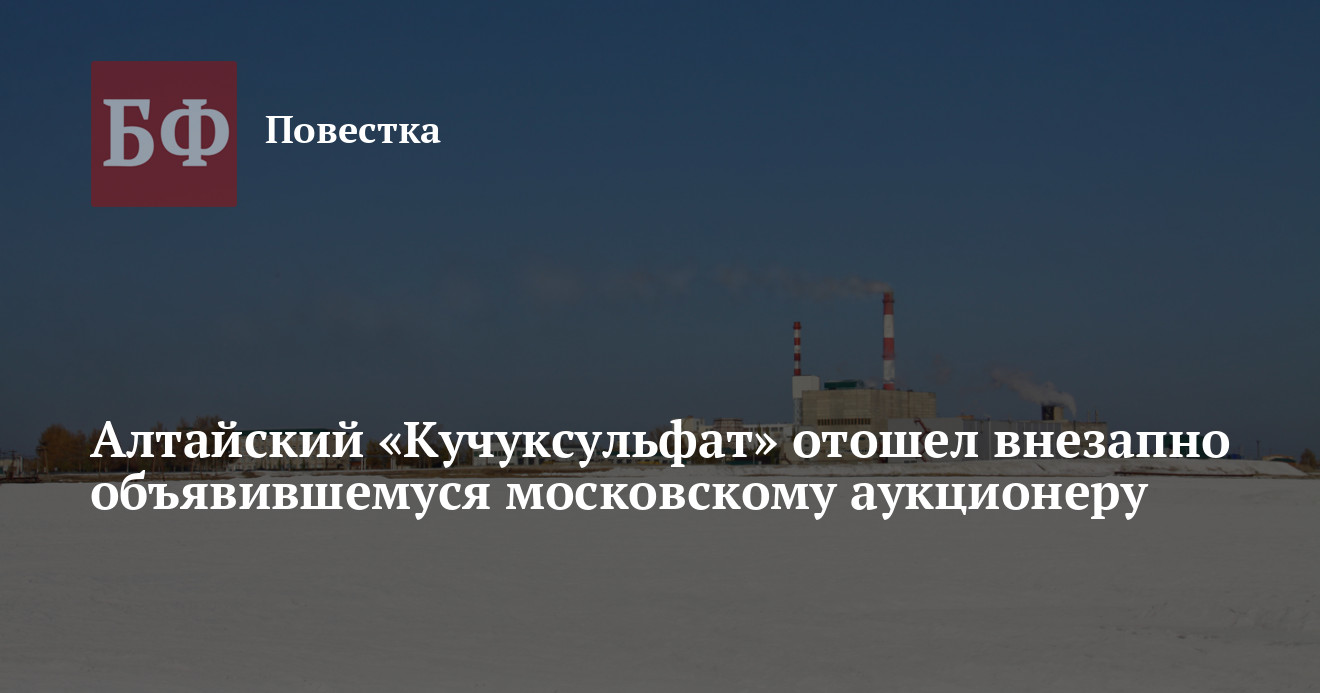 Известную московскую компанию «Росхим» объявили победителем аукциона по продаже 100% акций ранее деприватизированного алтайского АО «Кучуксульфат». Фирма предложила за ценные бумаги минимально возможный ценник. Стоит заметить, что по окончанию этапа подачи заявок «Росхим» не упоминался на ГИС «Торги» в качестве участника конкурса. Тогда фигурировали лишь два лица, которых к аукциону не допустила комиссия.