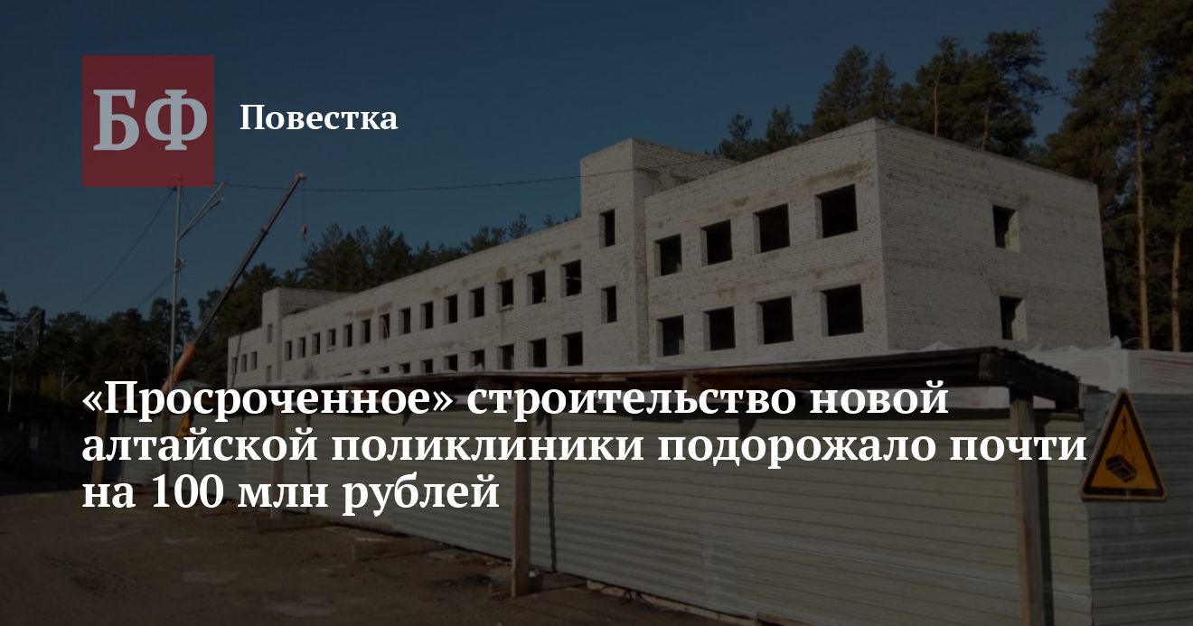 В районном центре Ребриха в Алтайском крае уже полтора года не могут достроить новое здание поликлиники. Как сообщает региональный исполком Общероссийского народного фронта, сейчас работы на объекте даже не ведутся. Здание представляет собой голую коробку без крыши. Между тем цена контракта на строительство выросла почти на 100 млн рублей.