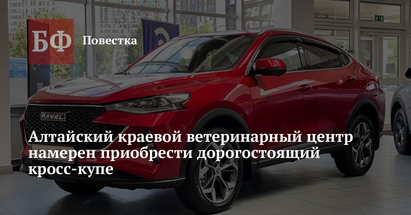 14 ноября Алтайский краевой ветеринарный центр по предупреждению и диагностике болезней животных, учредителем которого, по сведениям ЕГРЮЛ, является региональное управление ветеринарии, объявил о закупке китайского автомобиля марки HAVAL F7X или его эквивалента. Начальная цена контракта составляет 3 млн рублей. В техническом задании сказано, что машина должна быть полноприводной, не ранее 2023 года выпуска, белого или серого цвета, а также соответствовать другим обозначенным параметрам. Заявки на участие в закупках будут принимать до 22 ноября.